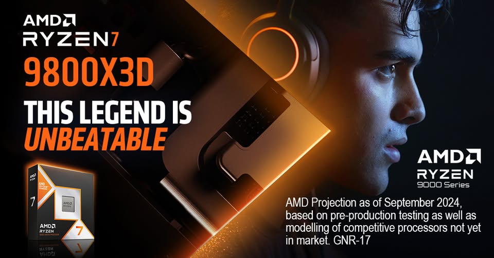 CPU Model AMD Ryzen 7 9800X3D 5.2ghz (8 Cores, 16 Threads, 96MB Cache)